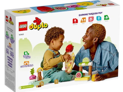 - Farmers market toy for toddlers – Introduce little builders aged 18 months and up to fun shopping play with the LEGO® DUPLO® My First Organic Market (10983) toy