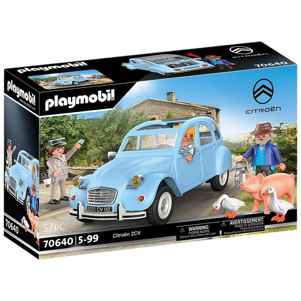 - The toy set includes a Citroën 2CV by PLAYMOBIL, three PLAYMOBIL figures, a pig, two geese, two milk cans, front headlights and many other lovely extras. A perfect gift for car enthusiasts and nostalgia fans.
