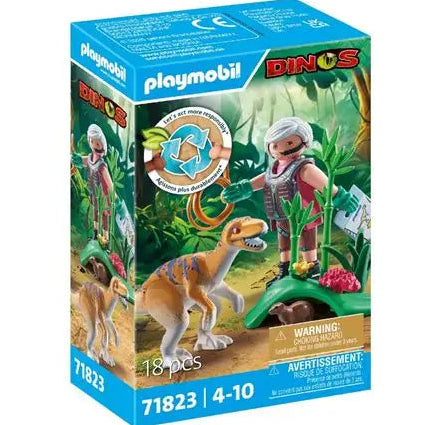 Box dimensions: 9.3 x 14.2 x 4.5 cm Product dimensions: 29.5 x 15.4 x 11.3 cm Weight: 62 g Age: 4 years and up A dangerous Velociraptor has targeted a small rodent mammal, which cleverly hides in a mound of earth. As the dinosaur researcher wrestles with whether to intervene in the events, he documents the captivating spectacle of the natural food chain. He is protected from potential attacks by the Velociraptor with a sturdy breastplate. Includes a dinosaur knowledge card.